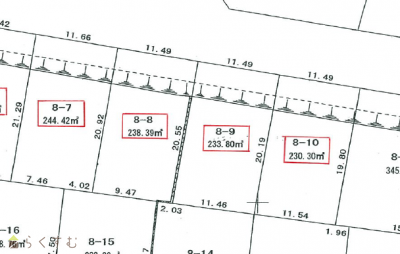 | 設備 | 整形地、閑静な住宅街、建築条件なし、所有権、即引き渡し可、電気、都市ガス(宅地内)、上水道(宅地内)、下水道(宅地内)、住宅向け | ||