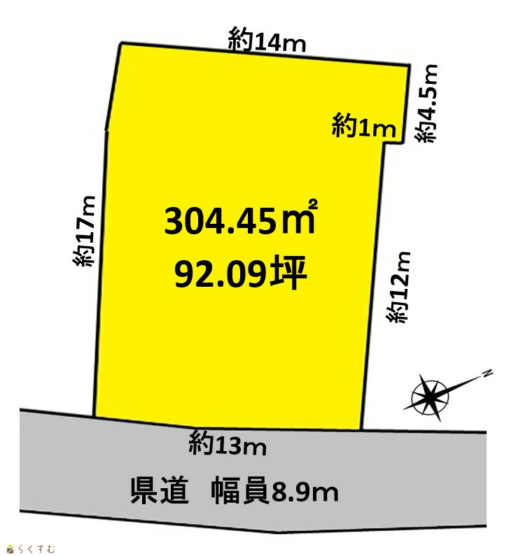 | 形状 | 間口 13m | 道路 | 県道 幅員8.9m |
