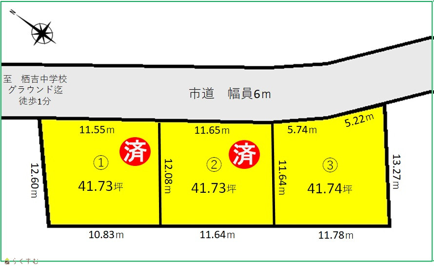 栖吉小・中学校まで徒歩3分圏内 間口10m以上
