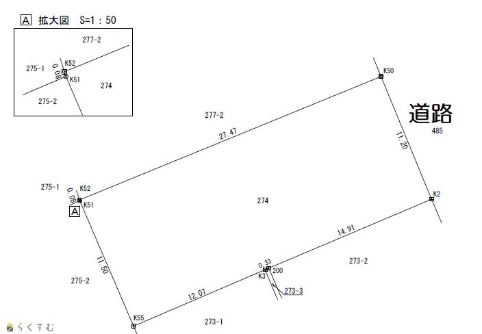 | 形状 | 間口 11.2m × 奥行 27.4m | 道路 | 公道 幅員11m消雪道路 |