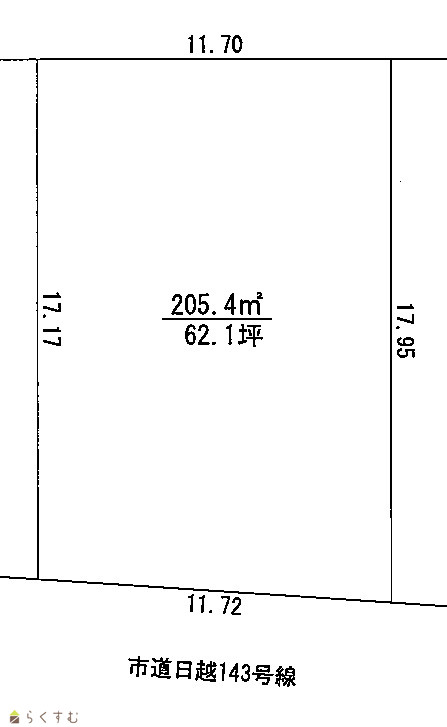 | 形状 | 間口 11.7m × 奥行 17.1m | 道路 | 南側市道幅員5m |