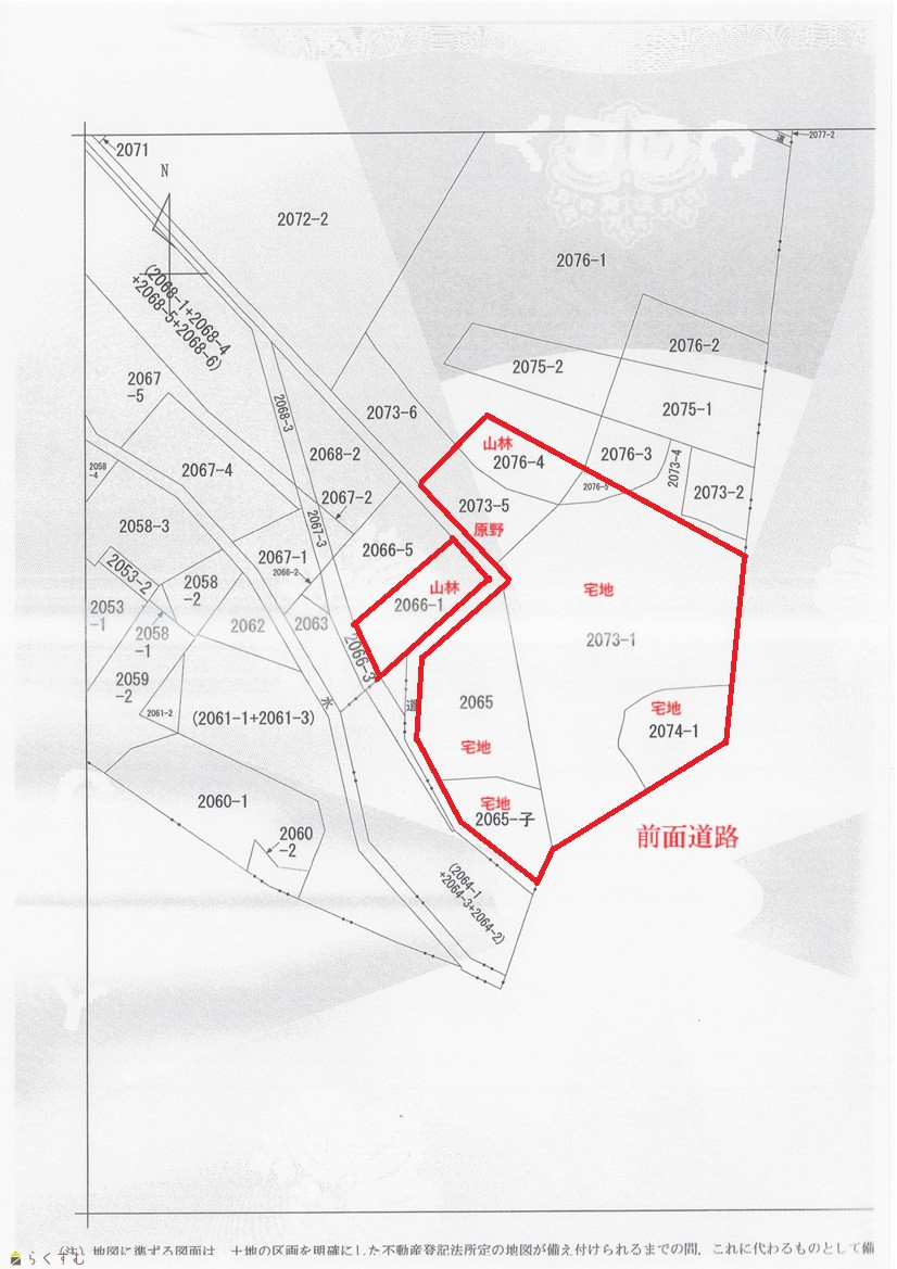| 備考 | 都市計画法43条許可により住宅建築可能です。お勧めの住宅建築部土地は137坪ほどの広さがあり、有効宅地部面積は408坪ほどあります。物件は全8筆で、山林・原野を含みます。物件土地の一部に告知事項有 | ||
