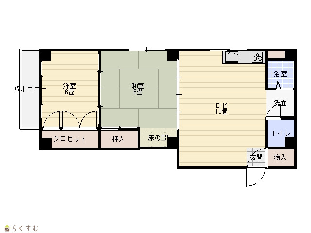 2DK (和室:8畳) (洋室:6) DK13 |