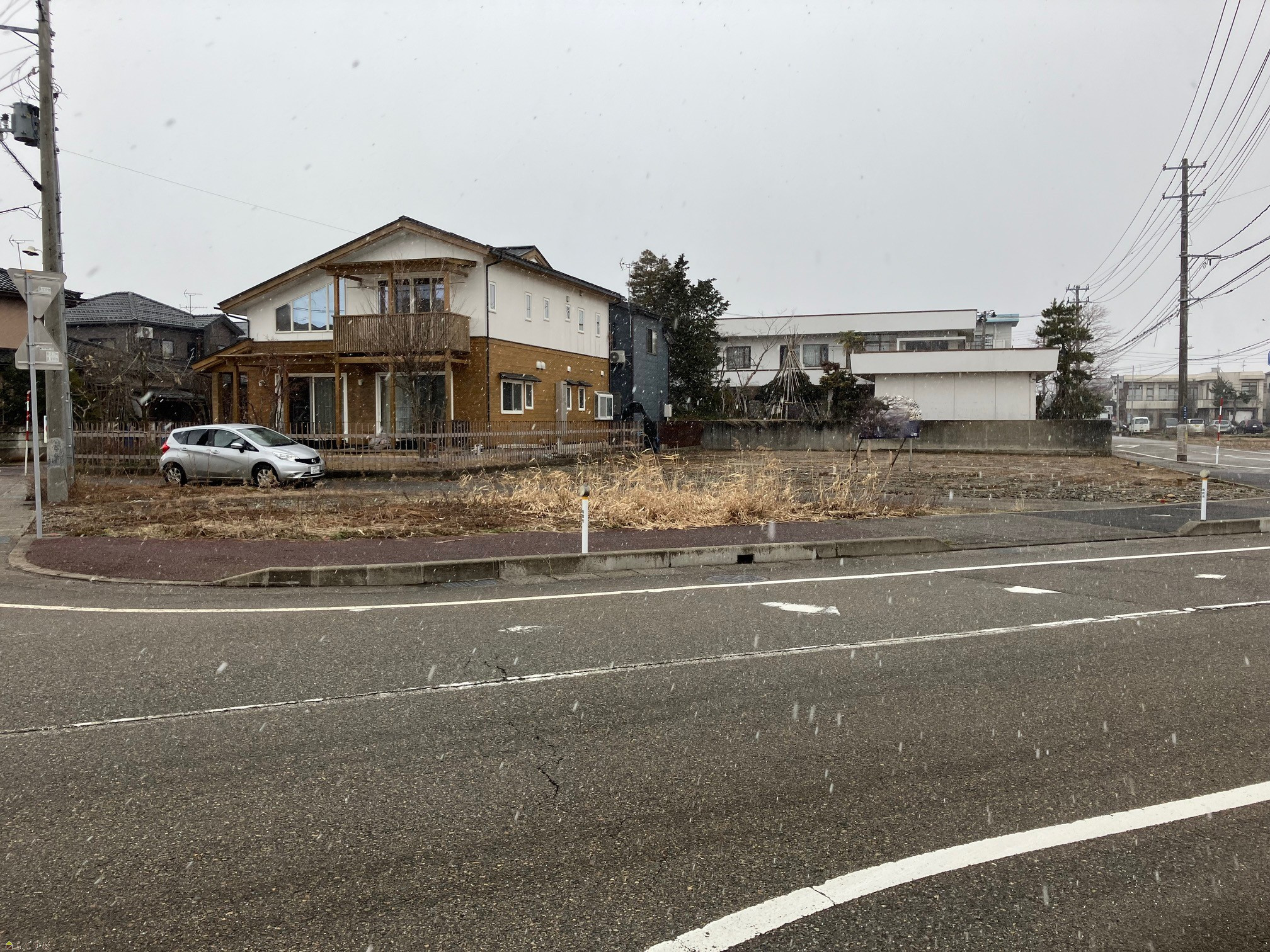 | 備考 | ※前面道路は除雪道路であり、幅員は歩道を含みます。 ※水道引込工事費、メーター加入金及び公共ます設置費の負担が必要となります。 ※現況渡しです。(南側に電柱、北西側に舗装箇所があります。) |