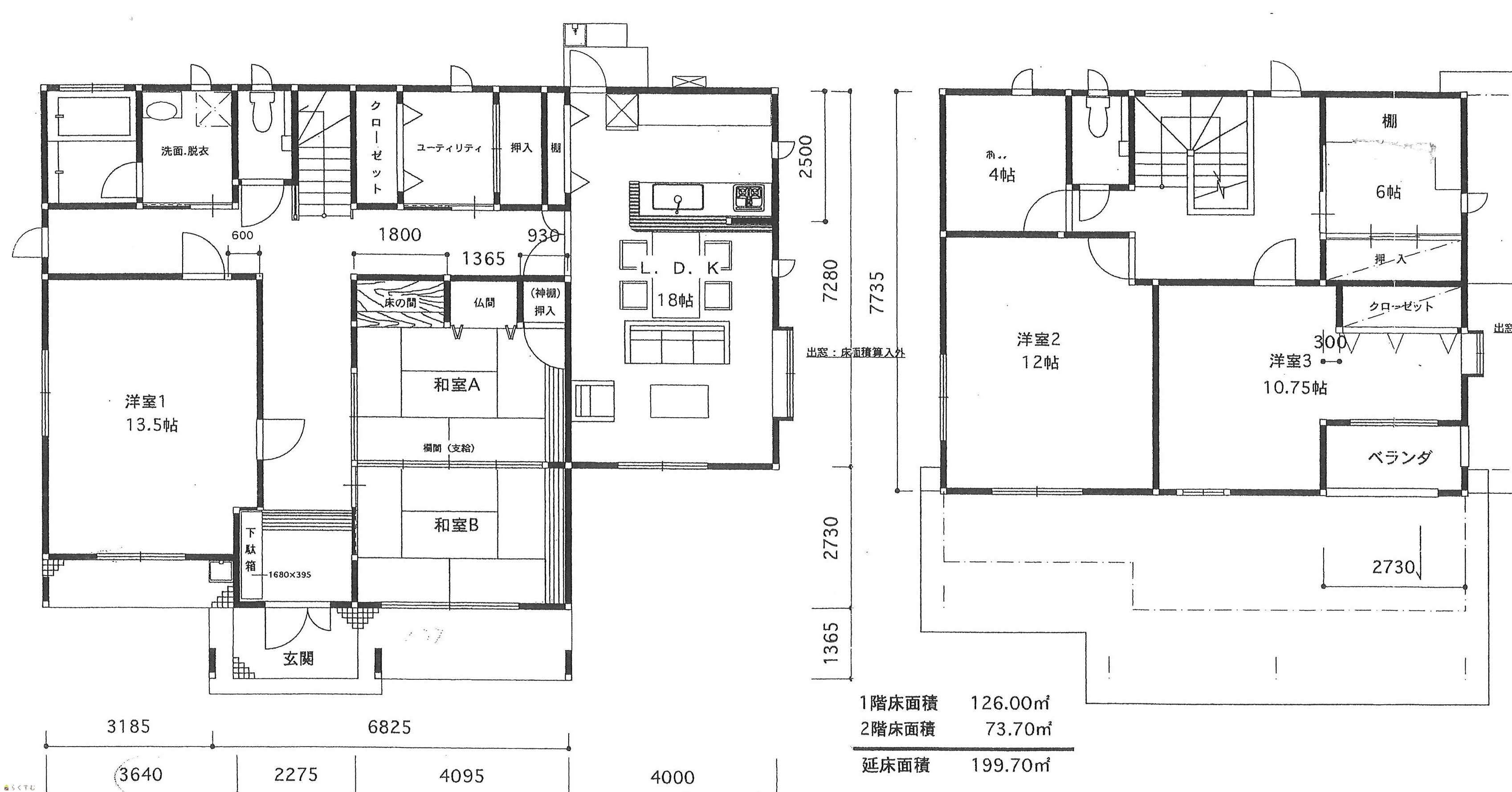 | 建物面積 | 1階 126㎡/ 2階 73.73㎡/ 計 199.73㎡ /60.41坪 | ||