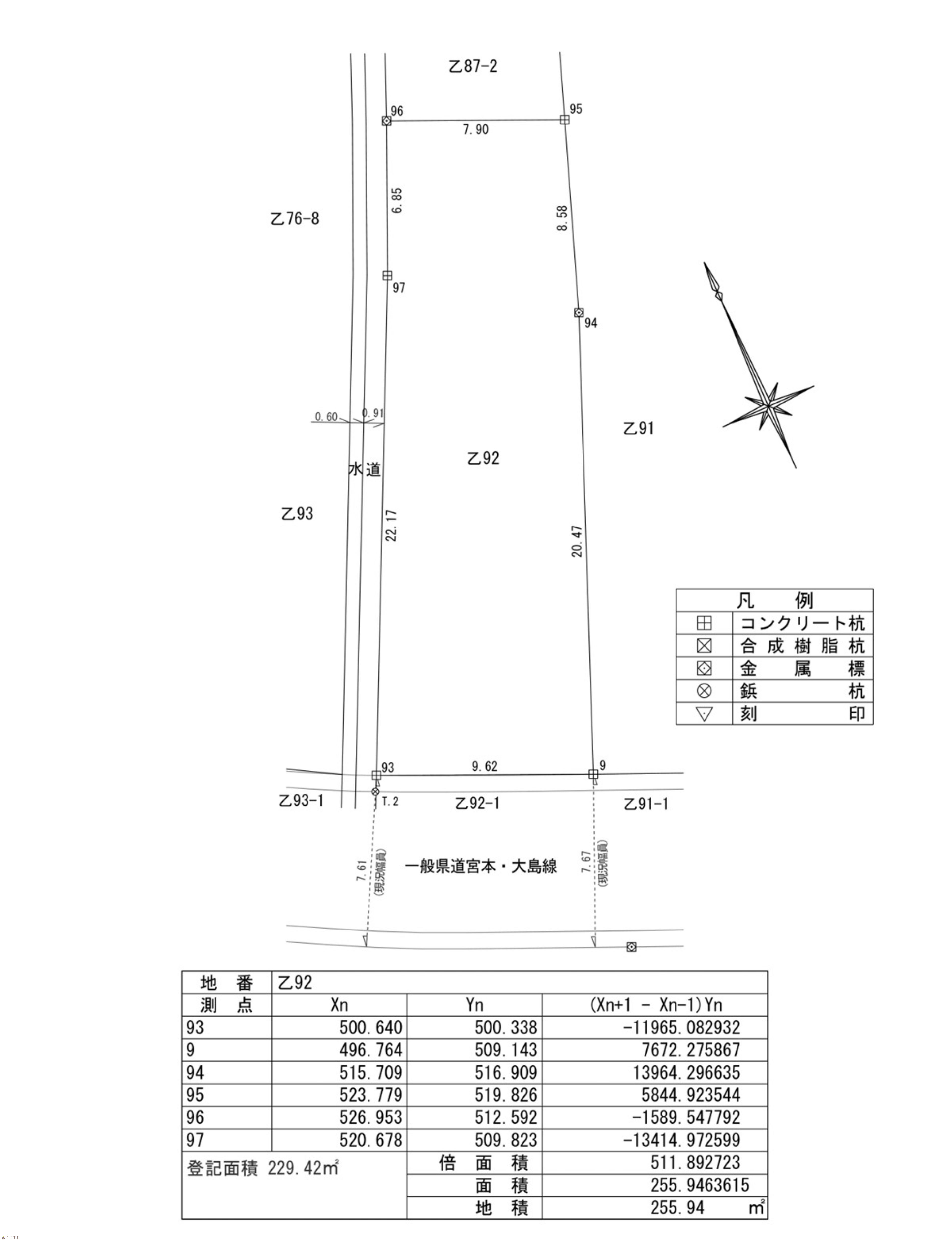 | 備考 | ・実測面積は【255.94㎡】です。土地地積更正登記を希望される場合は買主様負担にて実施してください。 ・売主様の契約不適合責任は免責です。 |
