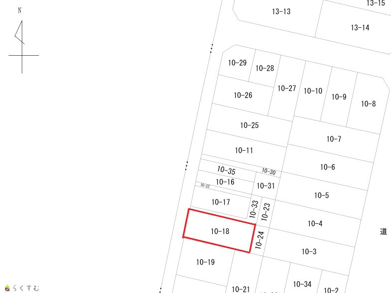 | 形状 | 間口 10m × 奥行 19.5m | 道路 | 西側 公道 約7.8m 消雪設備なし |
