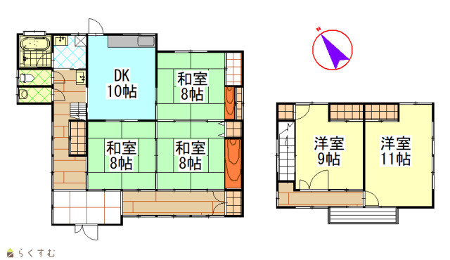 5LDK (和室:8畳、8畳、8畳) (洋室:9、11) LDK10 |