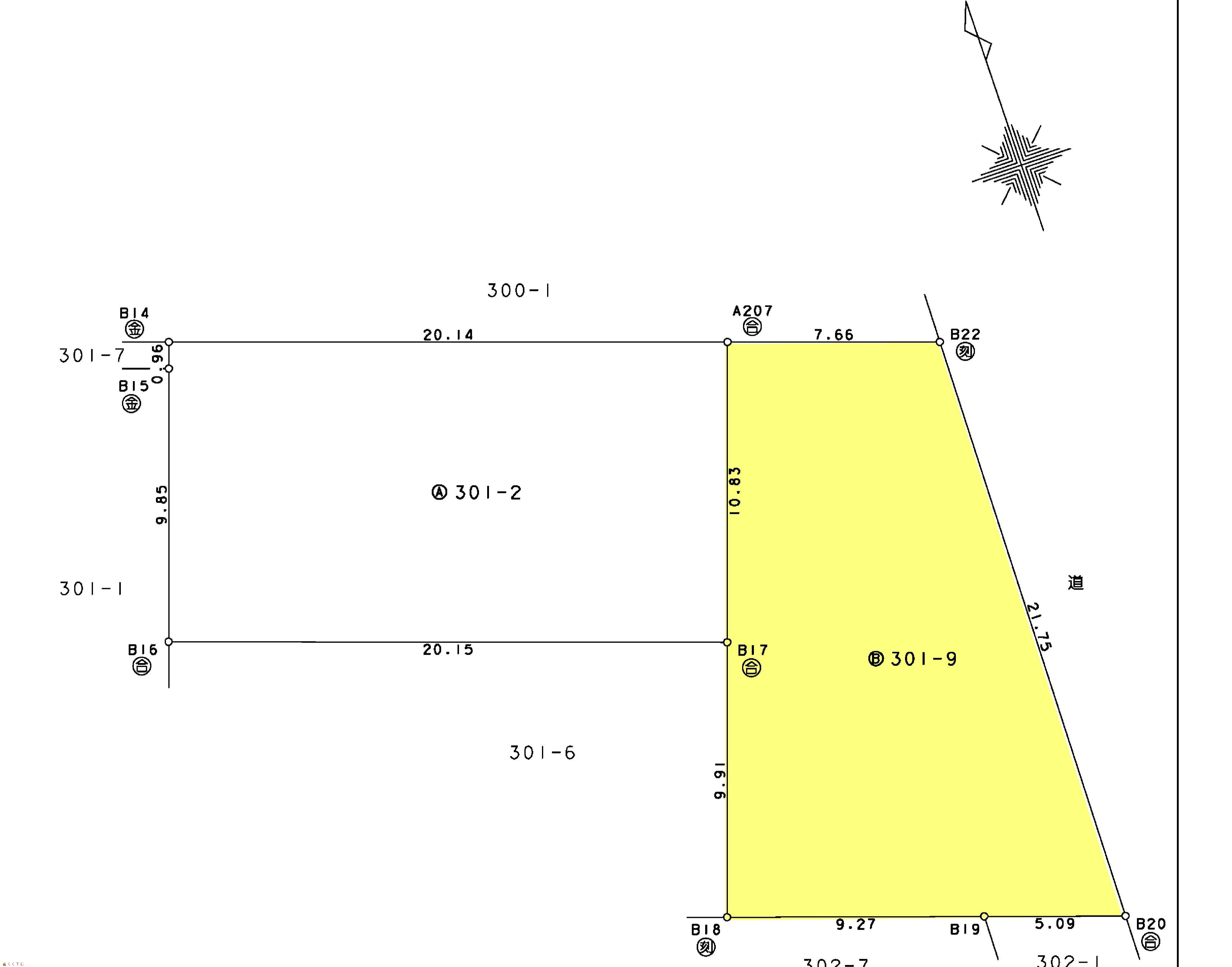 | 形状 | 間口 5.09m × 奥行 20.74m | 道路 | 南側:幅員5.9m |