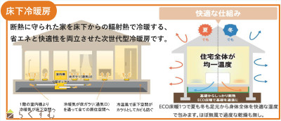 2LDK、太陽光発電システム6.375kw+蓄電池システム10kw・床下冷暖房を採用、道向かいに医院あり、スーパーまで徒歩7分