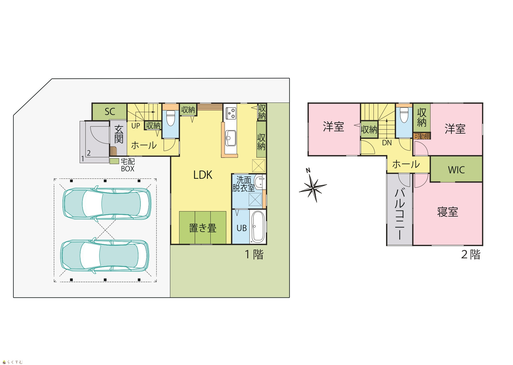 | 建物面積 | 1階 45.95㎡/ 2階 42.64㎡/ 計 88.59㎡ /26.79坪 | ||