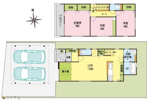 3LDK (洋室:8、6、6) LDK15 |
