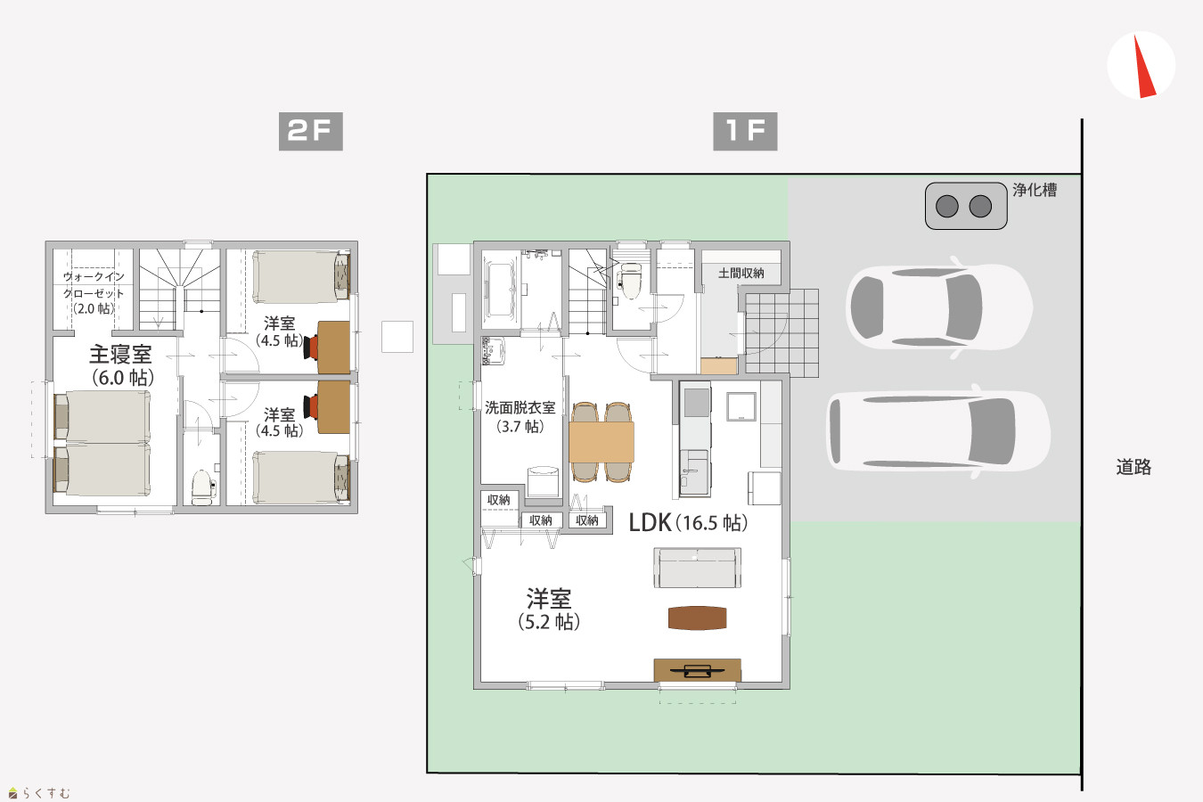 4LDK (洋室:6、5.2、4.5、4.5) LDK16.5 |
