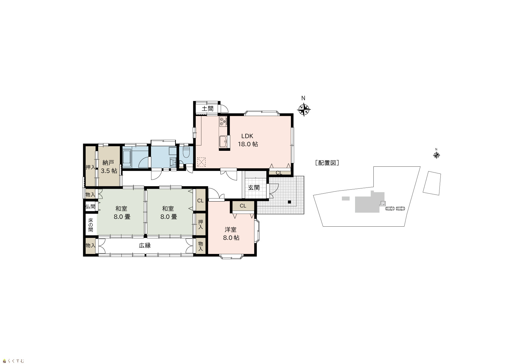 3LDK (和室:8.0畳、8.0畳) (洋室:8.0) LDK18.0 |