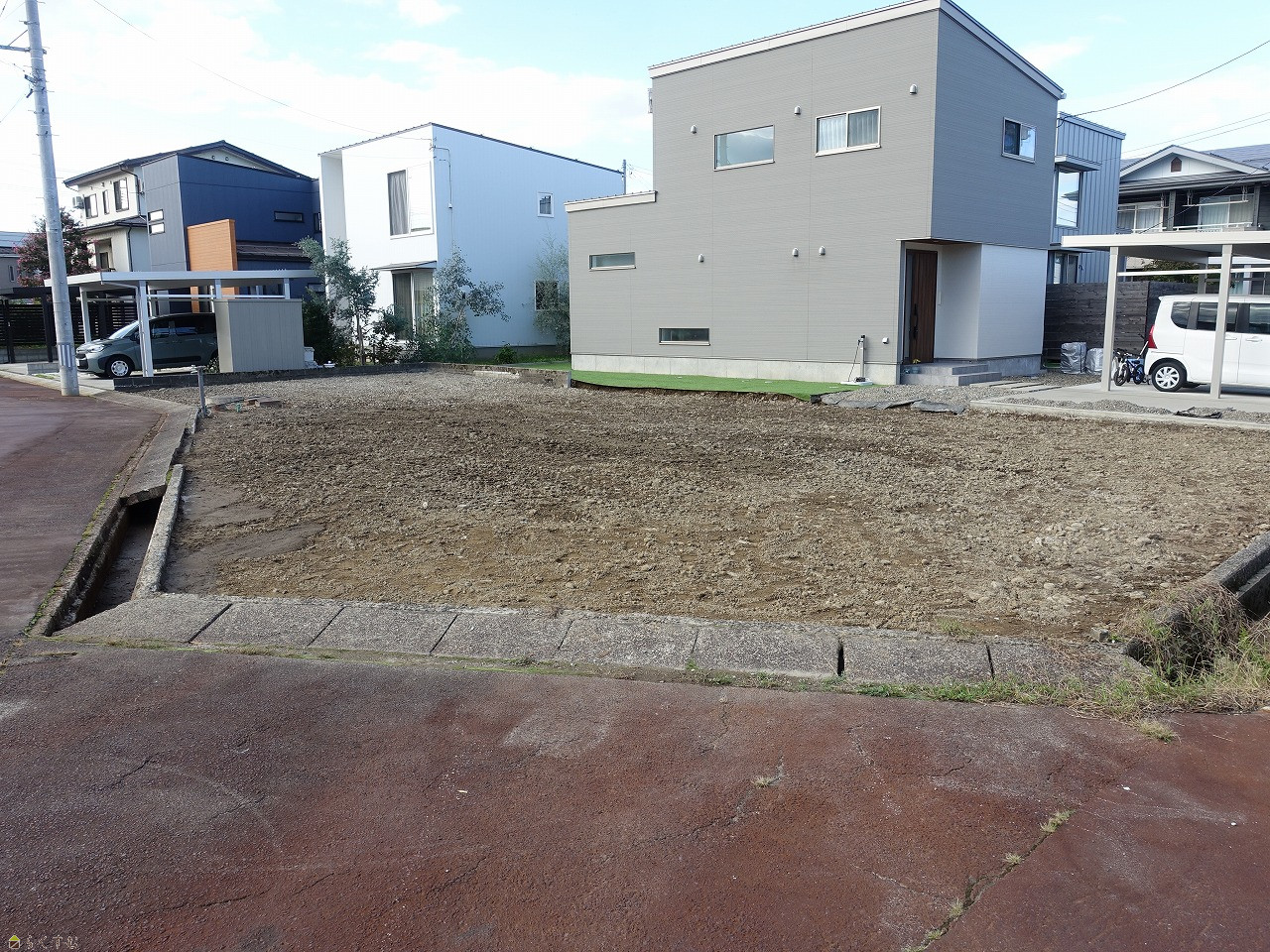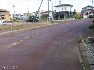 | 設備 | 角地、前道6m以上、南側道路面す、更地、スーパー近く、所有権、電気、都市ガス(宅地内)、上水道(宅地内)、下水道(宅地内) | ||