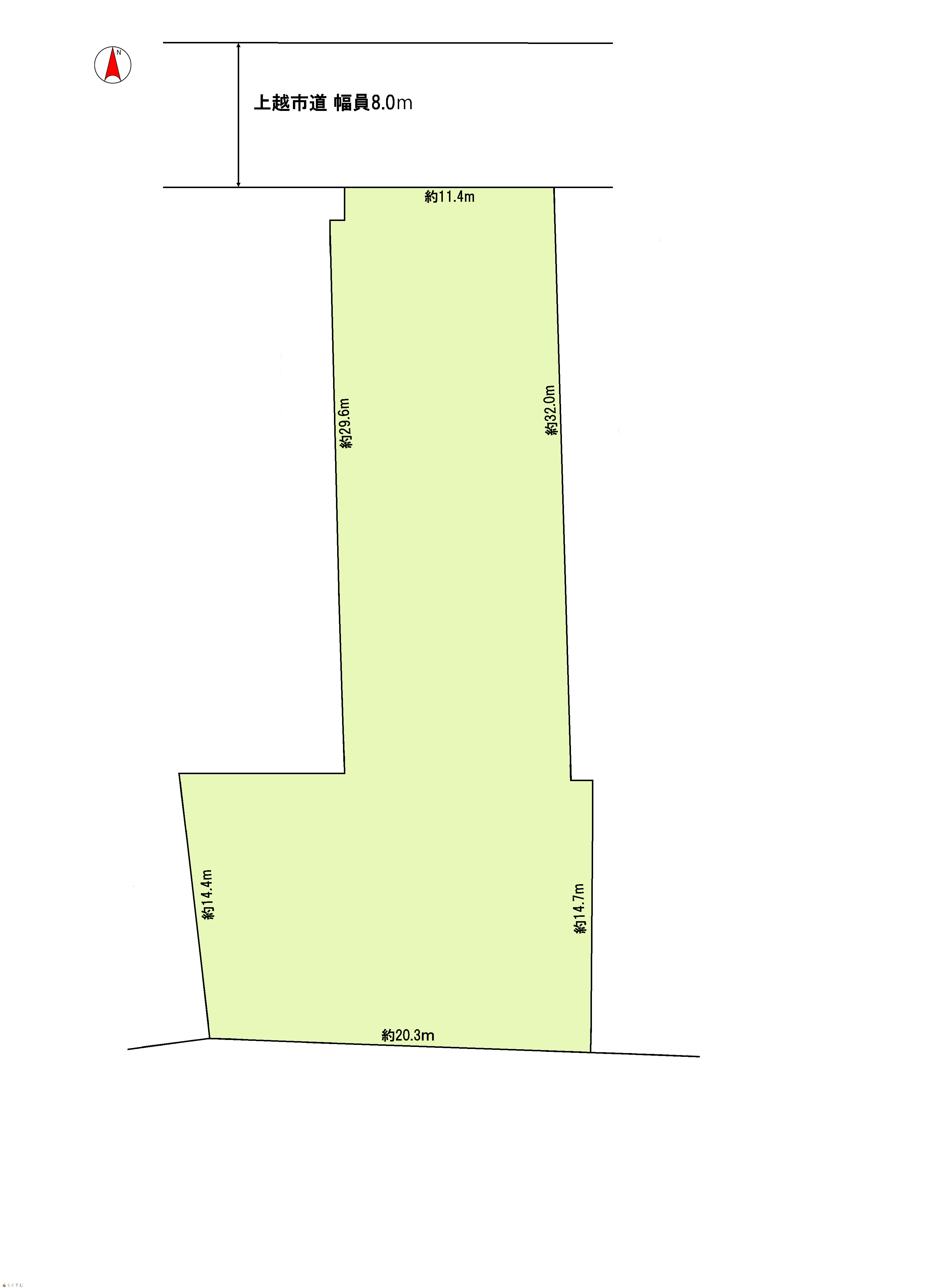 | 形状 | 間口 11.4m × 奥行 46m | 道路 | 北側:幅員8.0m(除雪道路) |