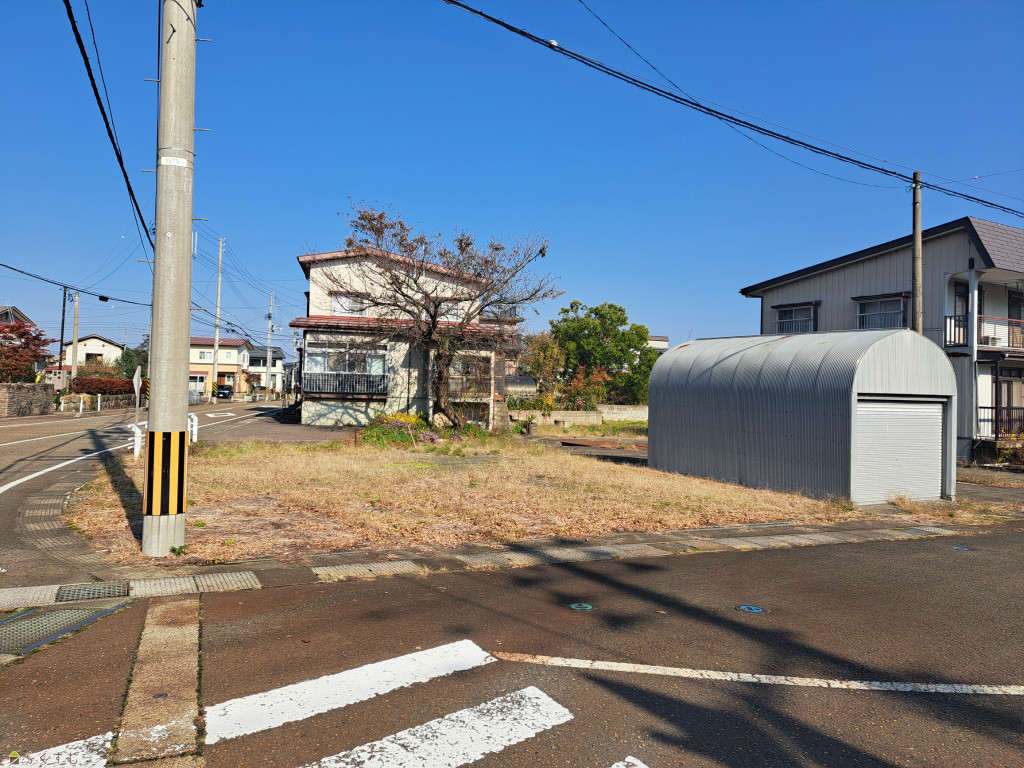 | 設備 | 角地、前道6m以上、南側道路面す、学校近く、建築条件なし、側溝、都市ガス(宅地内)、上水道(宅地内)、下水道(宅地内) | ||