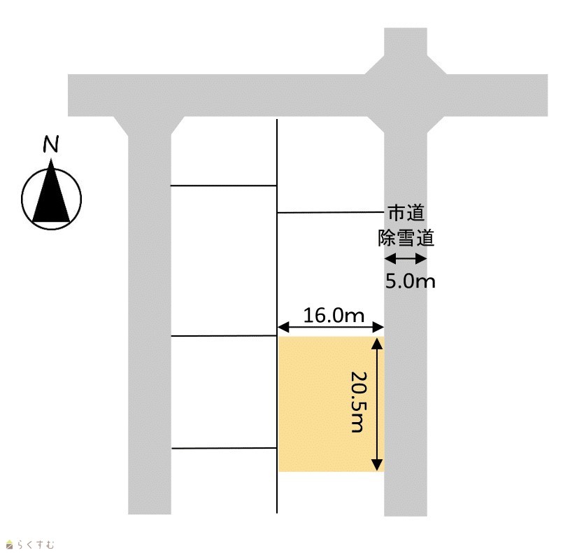 | 形状 | 間口 20.5m × 奥行 16.0m | 道路 | 東 5.0m |