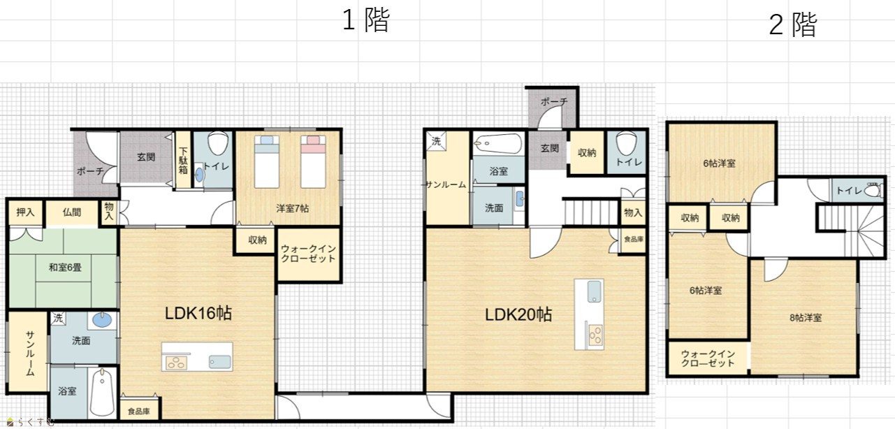 5LDK (和室:6畳) (洋室:7、6、6、8) LDK16・20 |