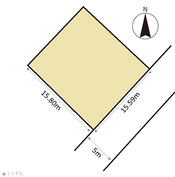 | 形状 | 間口 15.5m × 奥行 15.8m | 道路 | 南東:市道5m |