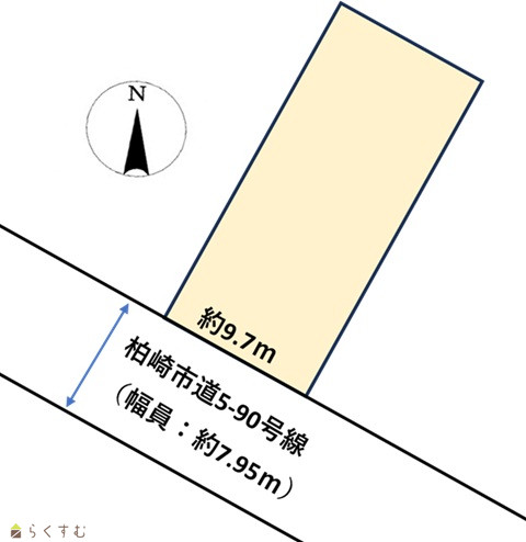 | 形状 | 間口 9.7m | 道路 | 南西側:市道(幅員:約7.95m) |