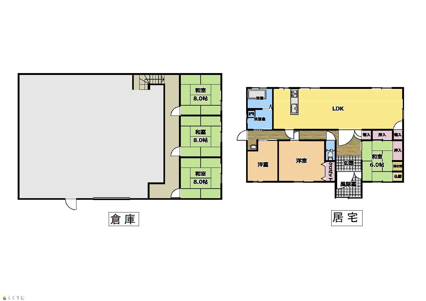 ※画像クリックで拡大表示 倉庫・居宅 間取り図