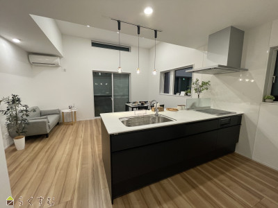 | 設備 | 日当り良好、スーパー近く、フラット35S適合、新築時図面あり、BELS/省エネ基準適合認定建物、建物確認・完了検査済証あり、全室フローリング、駐車3台以上可能、TVインターホン、複層ガラス、デインプルキー、システムキッチン、カウンターキッチン、IHクッキングヒーター、3口コンロ、追いだき機能付き、バス1坪以上、温水洗浄便座、シャワー付き洗面台、エアコンあり、24時間換気システム、オール電化、省エネ給湯機、上水道、下水道、バリアフリー、ウォークインクローゼット、全居室収納あり、シューズBOX、シューズインクローゼット、即引き渡し可能 | ||
