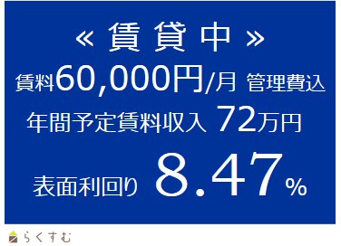 | 表面利回り(満室想定時) | 8.47% | 満室想定年収 | - (想定月収: - ) |