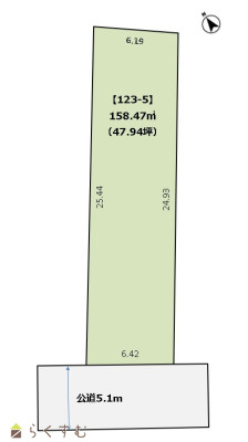 | 形状 | 間口 6.4m × 奥行 24.9m | 道路 | 南側5.1m公道 |