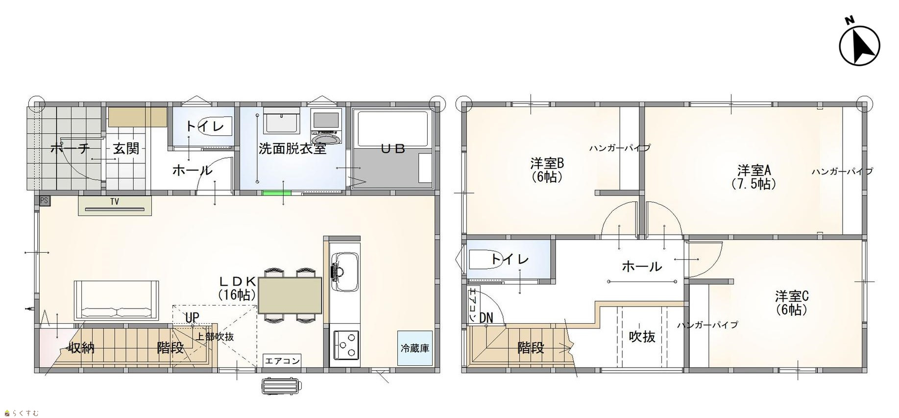 ![]() ※画像クリックで拡大表示 全居室6帖以上+収納、各フロアにホスクリーン&トイレが完備!