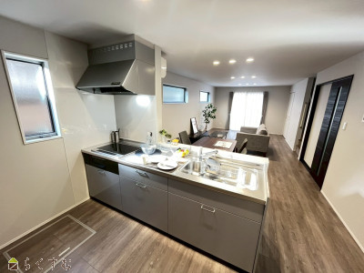| 設備 | 整形地、前面道路6m以上、日当り良好、閑静な住宅街、スーパー近く、BELS/省エネ基準適合認定建物、全室フローリング、駐車場2台以上、庭あり、TVインターホン、複層ガラス、システムキッチン、カウンターキッチン、IHクッキングヒーター、3口コンロ、追いだき機能付き、バス1坪以上、温水洗浄便座、シャワー付き洗面台、24時間換気システム、オール電化、省エネ給湯、高気密高断熱住宅、上水道、下水道、電気、全居室収納あり、シューズインクローゼット、照明器具付き、バリアフリー | ||