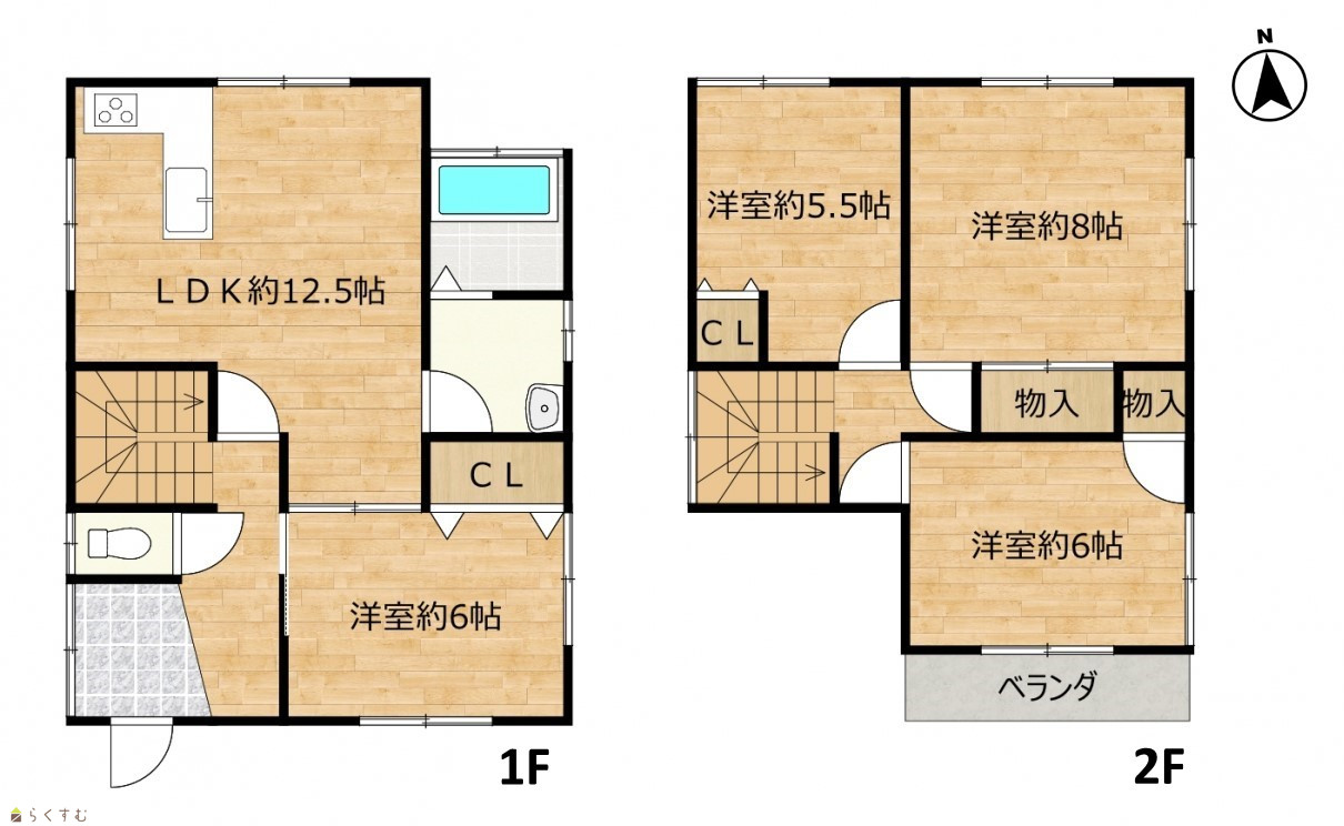 4LDK (洋室:8、6、6、5.5) LDK12.5 |