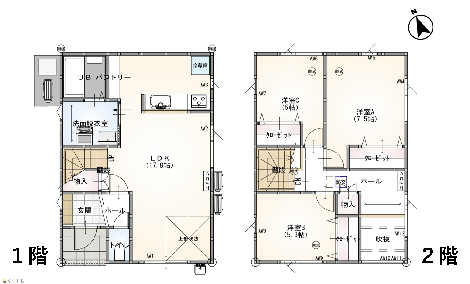 3LDK (洋室:7.5、5.3、5.0) LDK17.8 |