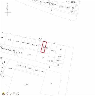 | 形状 | 間口 5.3m × 奥行 17.9m | 道路 | 北側7.6m市道 |