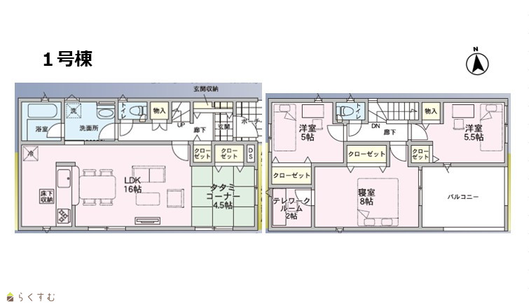 3LDK (洋室:8.0、5.5、5.0) LDK20.5 2階に2帖のテレワークルーム有 |