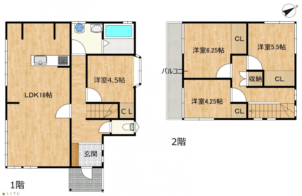 4LDK (洋室:6.2、5.5、4.5、4.2) LDK18 |