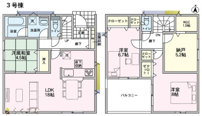 3LDK (洋室:8.0、5.5、5.0) LDK20.5 2階に2帖のテレワークルーム有 |
