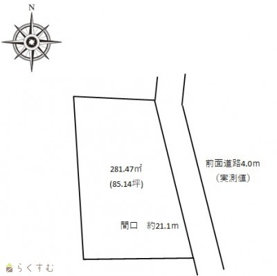 | 形状 | 間口 21.1m | 道路 | 3.7(消雪パイプ) |