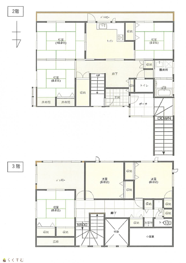 6DK (和室:8.0畳、8.0畳、10.0畳、8.0畳) (洋室:8.0、8.0) 9DK  |