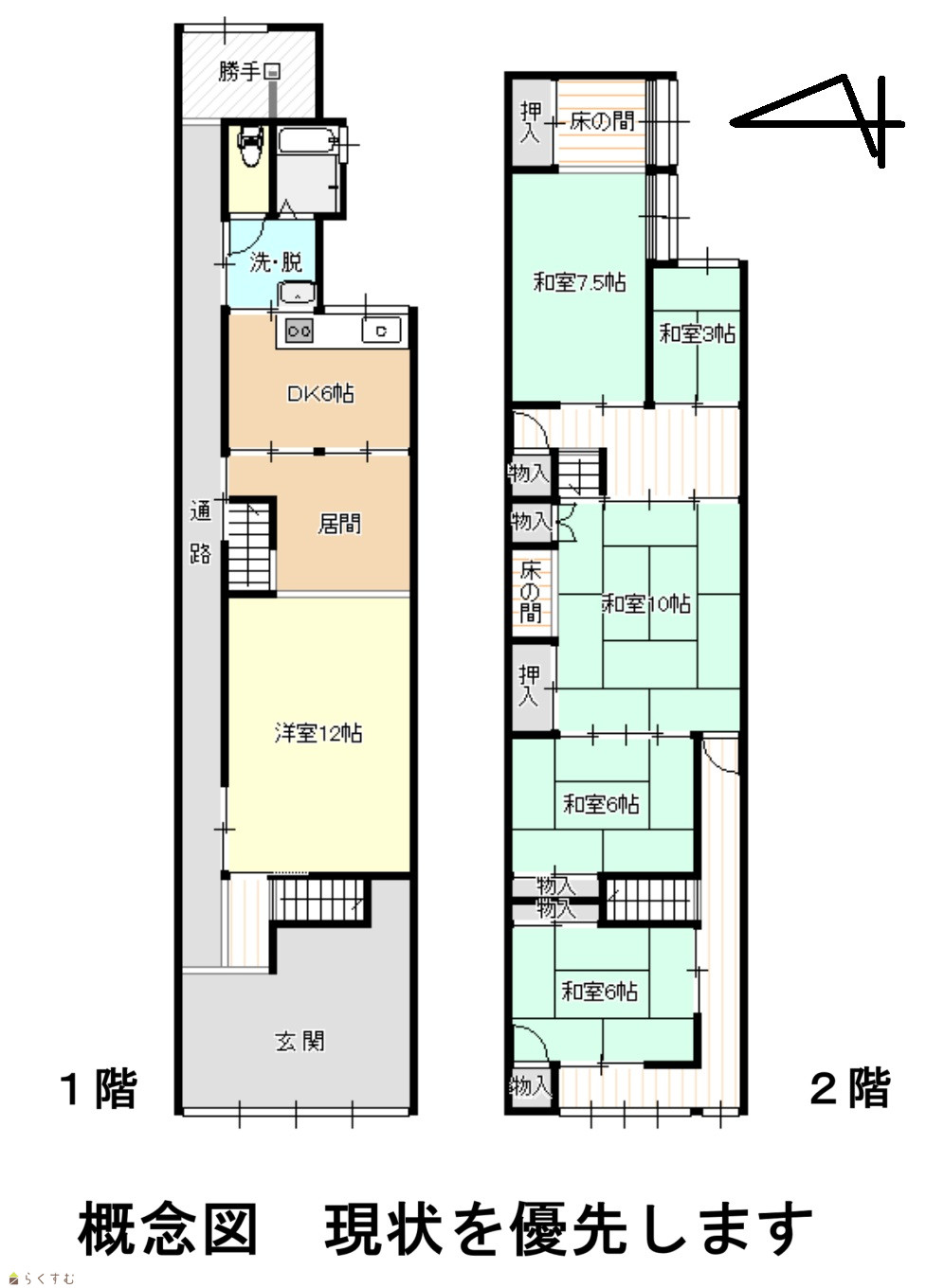 6DK (和室:3畳、6畳、6畳、7.5畳、10畳) (洋室:12) 6DK |
