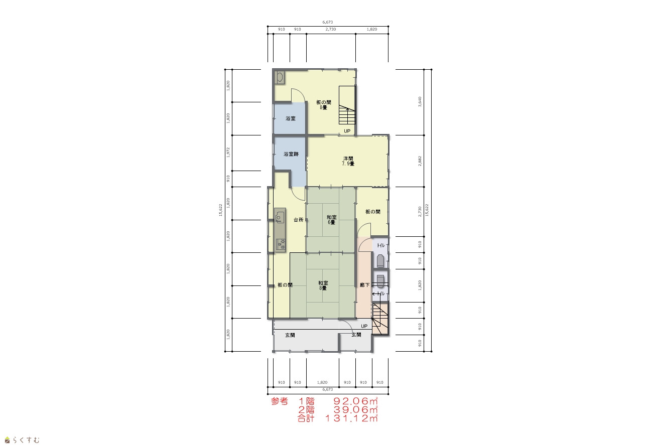 | 間取り | 5K (和室:6畳、6畳、8畳、8畳) (洋室:8) | ||