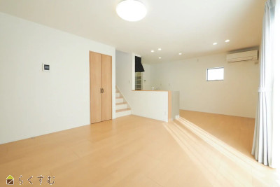| 角地で駐車3台可能、15.5帖のLDKはキッチンからリビングが見渡せ、家族の様子を感じながら家事ができます。3.5帖の広いランドリールームには物干し2本分のスペースと畳半分の収納付き。玄関・ホール・リビング・キッチンのパントリー、2階のファミリークロークや各洋室のクローゼット、主寝室の2.5帖ウォークインなど、充実の収納で暮らしやすさ◎。2階にもトイレがあり家族の毎日を快適に支えます。 | |||