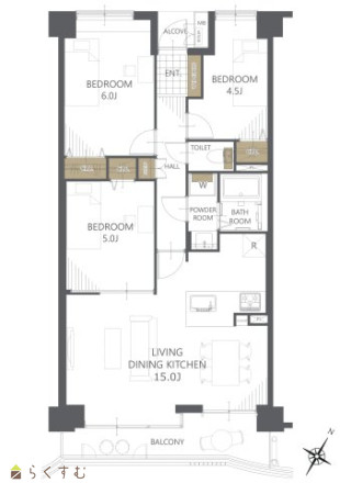 3LDK (洋室:6.0、5.0、4.5) LDK15 |