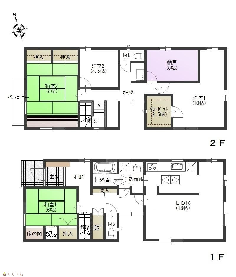 | ■ LDKは18帖で、家族が集まりやすいゆとりある空間 ■ 納戸は約5帖の広さを確保 ■ 2階10帖の洋室にはウォークインクローゼット付き ■ キッチン隣に洗面所を配置し、家事動線に配慮 ■ 2階にもトイレ・洗面所を備え、忙しい時間帯にも対応 ■ 和室を備え、くつろぎや来客対応にも使いやすい構成 ■ 小学校、スーパーまで徒歩10分圏内 | |||