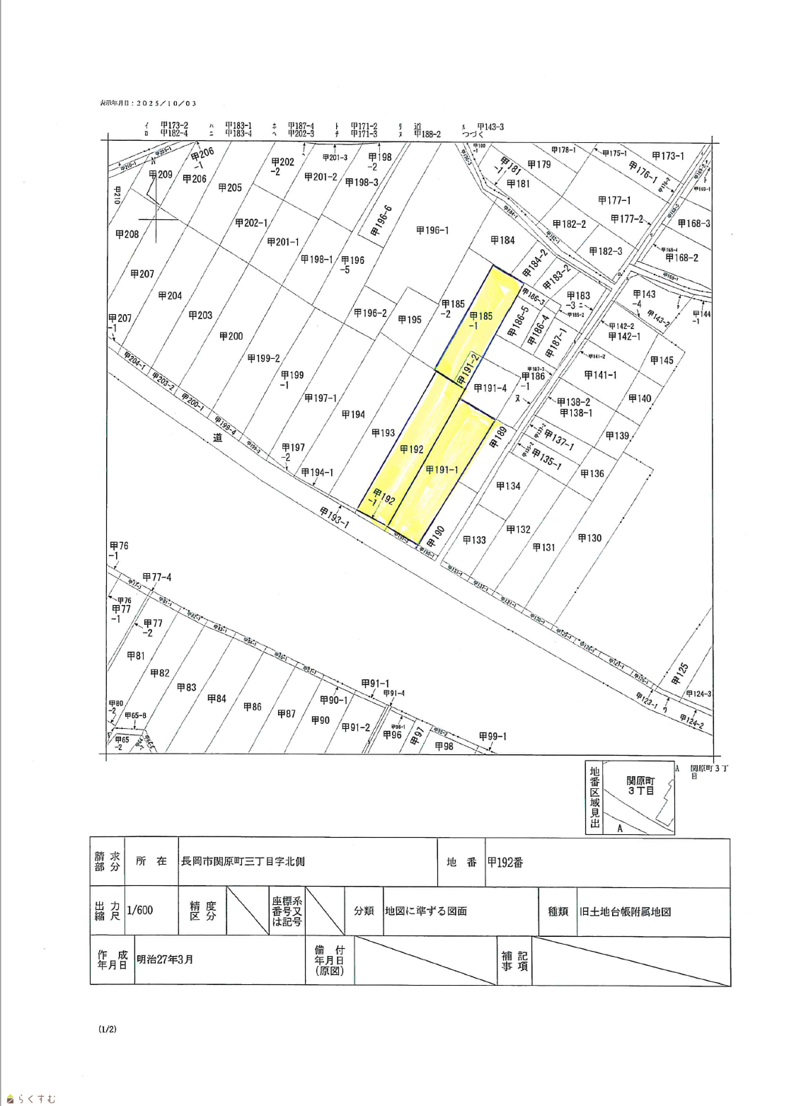 | 物件所在地 | 新潟県長岡市関原町3丁目甲191番1、甲191番2、甲185番1、甲192番 | ||