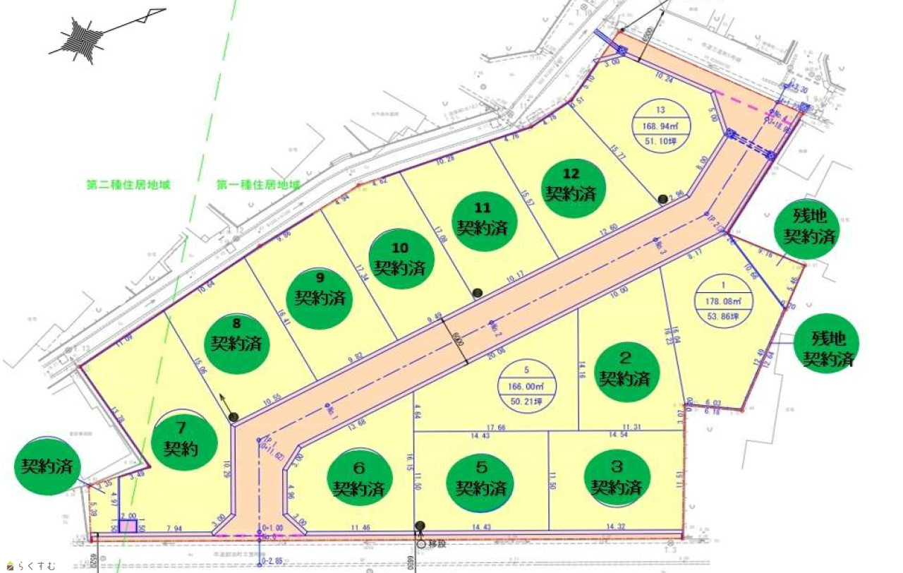 13区画の新規分譲地。角地を含む残り3区画好評分譲中。