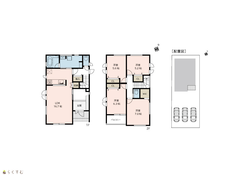 4LDK (洋室:7.0、6.3、5.6、5.2) LDK16.7 |