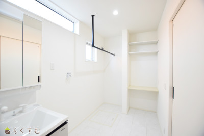 | ●家族が集まるLDKは南と西の2面採光で明るい空間 ●キッチンから洗面室へアクセスできる便利な間取りで家事効率UP! ●作業台を備えた洗面室は家事スペースとして重宝します ●主寝室にはWICを完備 ●お洗濯物がはかどる南面バルコニー | |||