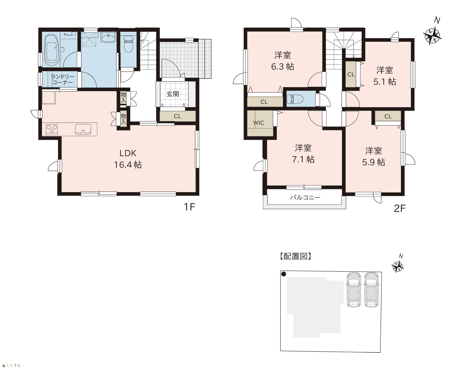 4LDK (洋室:7.1、6.3、5.9、5.1) LDK16.4 |