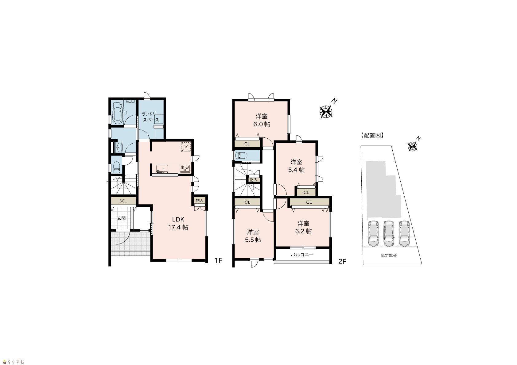 4LDK (洋室:6.2、6.0、5.5、5.4) LDK17.4 |